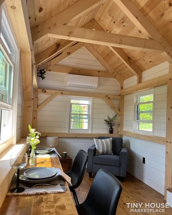 Walls: Finished with tongue-and-groove pine and includes all interior doors